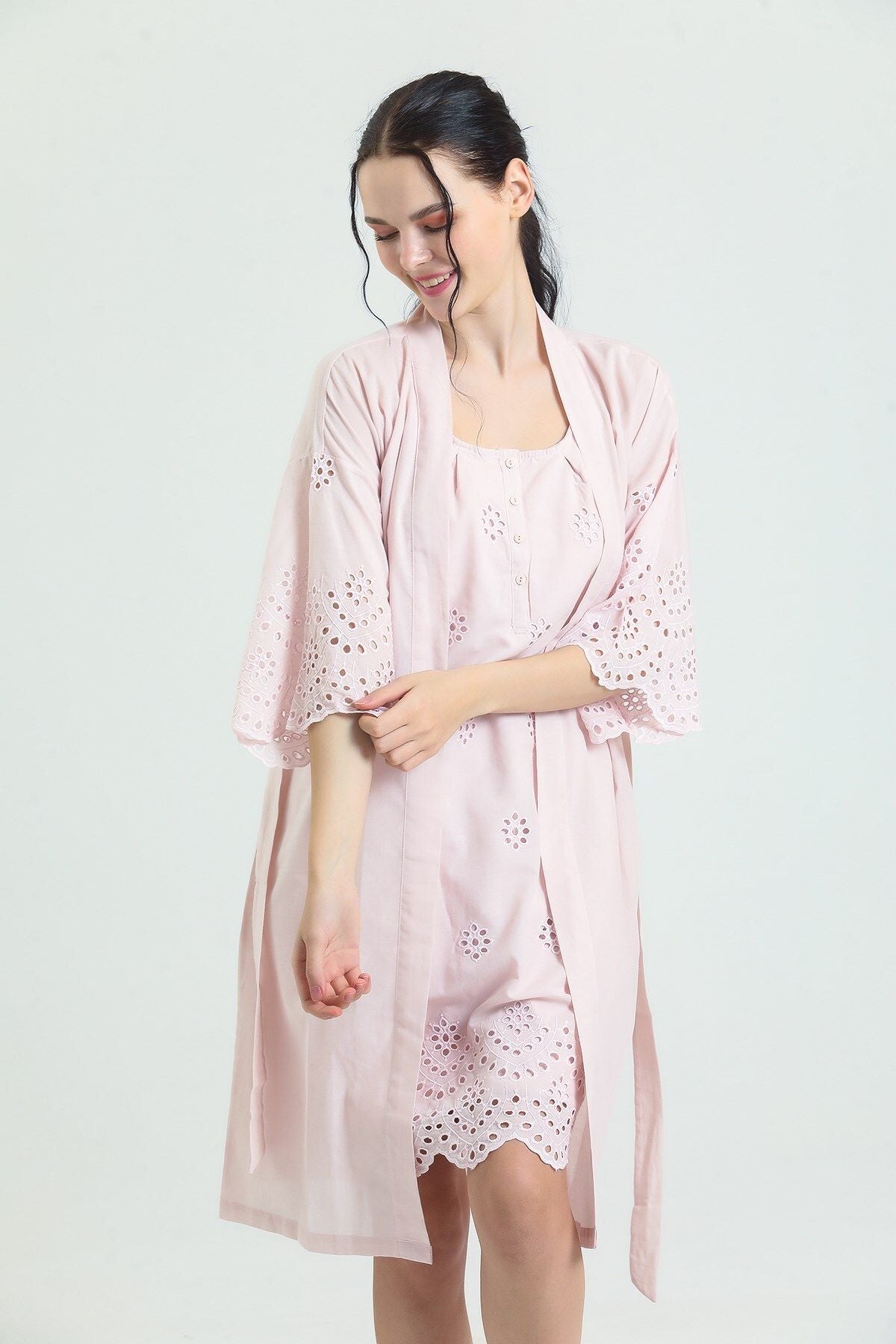 Brodeli Midi Boy Kadın Sabahlık Gecelik Takımı 30108