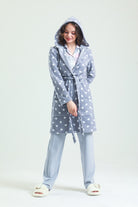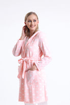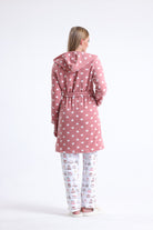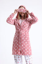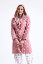 Kalp Desenli Kapüşonlu Polar Midi Kadın Sabahlık