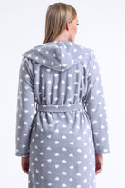 Kalp Desenli Kapüşonlu Polar Midi Kadın Sabahlık 35252
