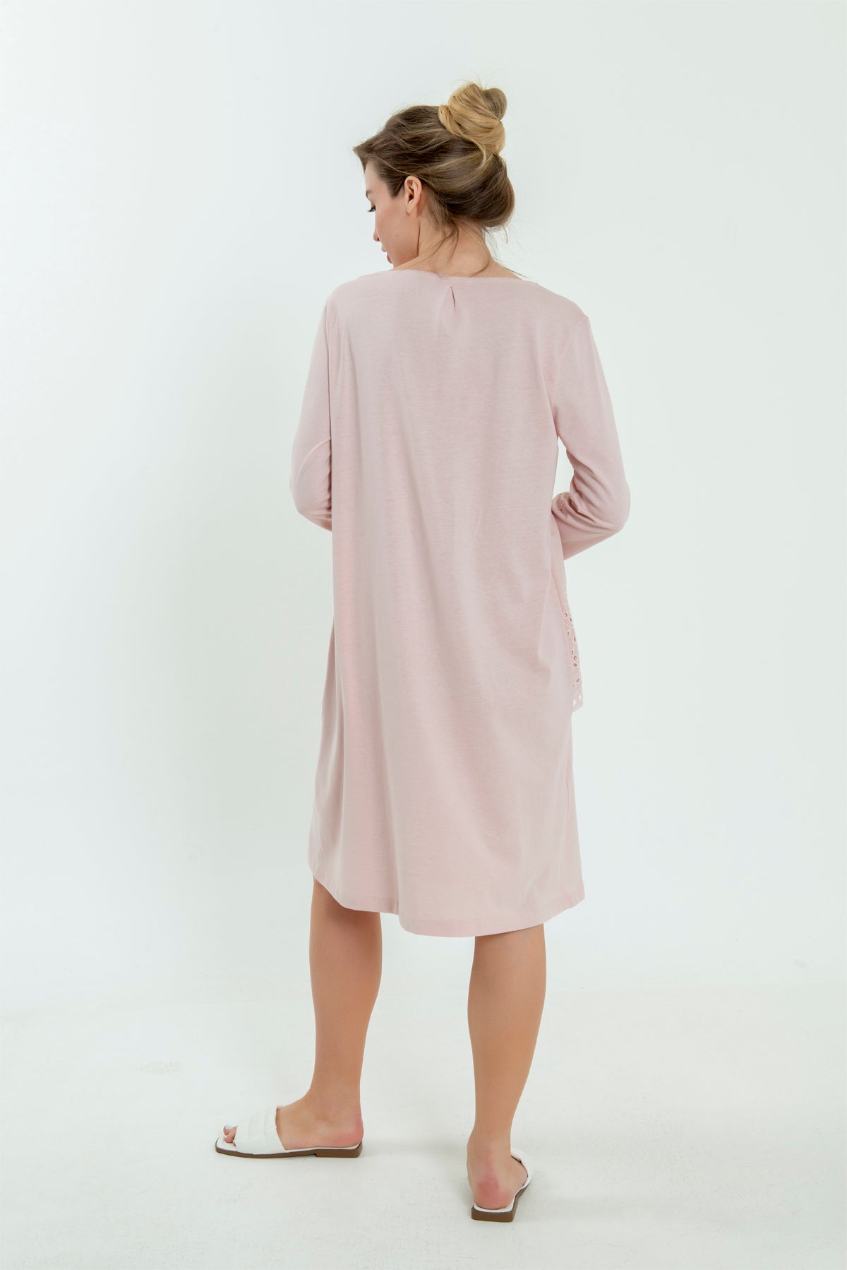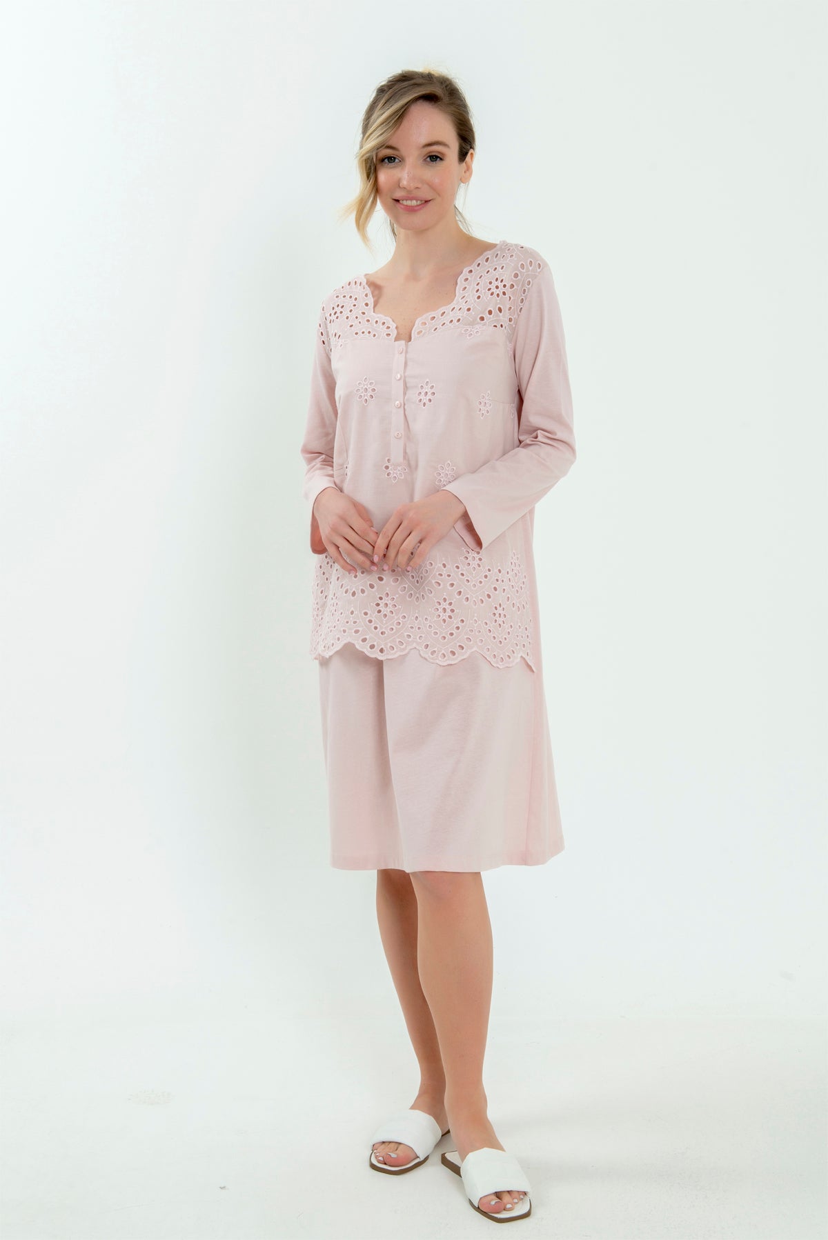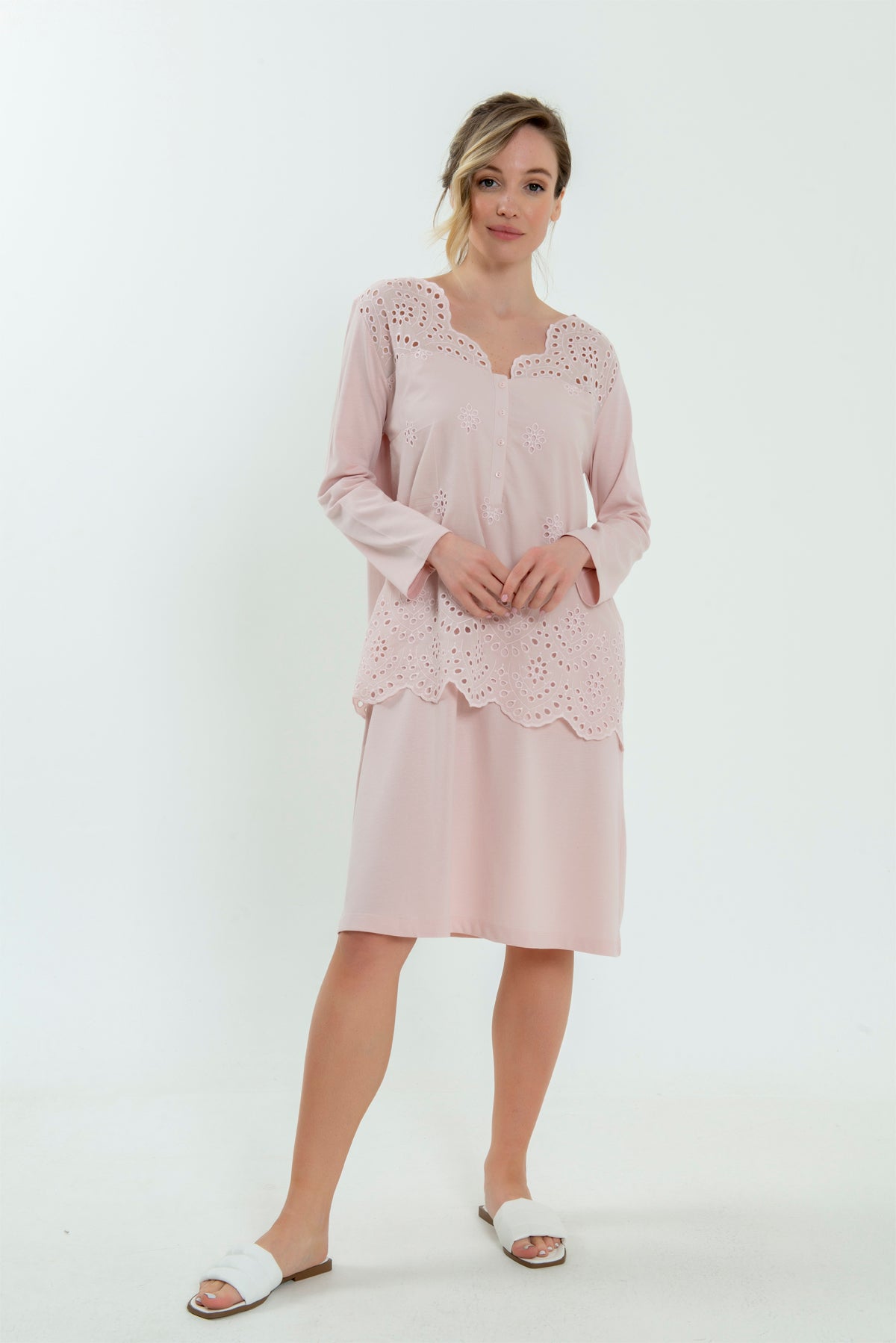 - - The design enriched with broderie anglaise details adds a feminine touch to nightgowns.