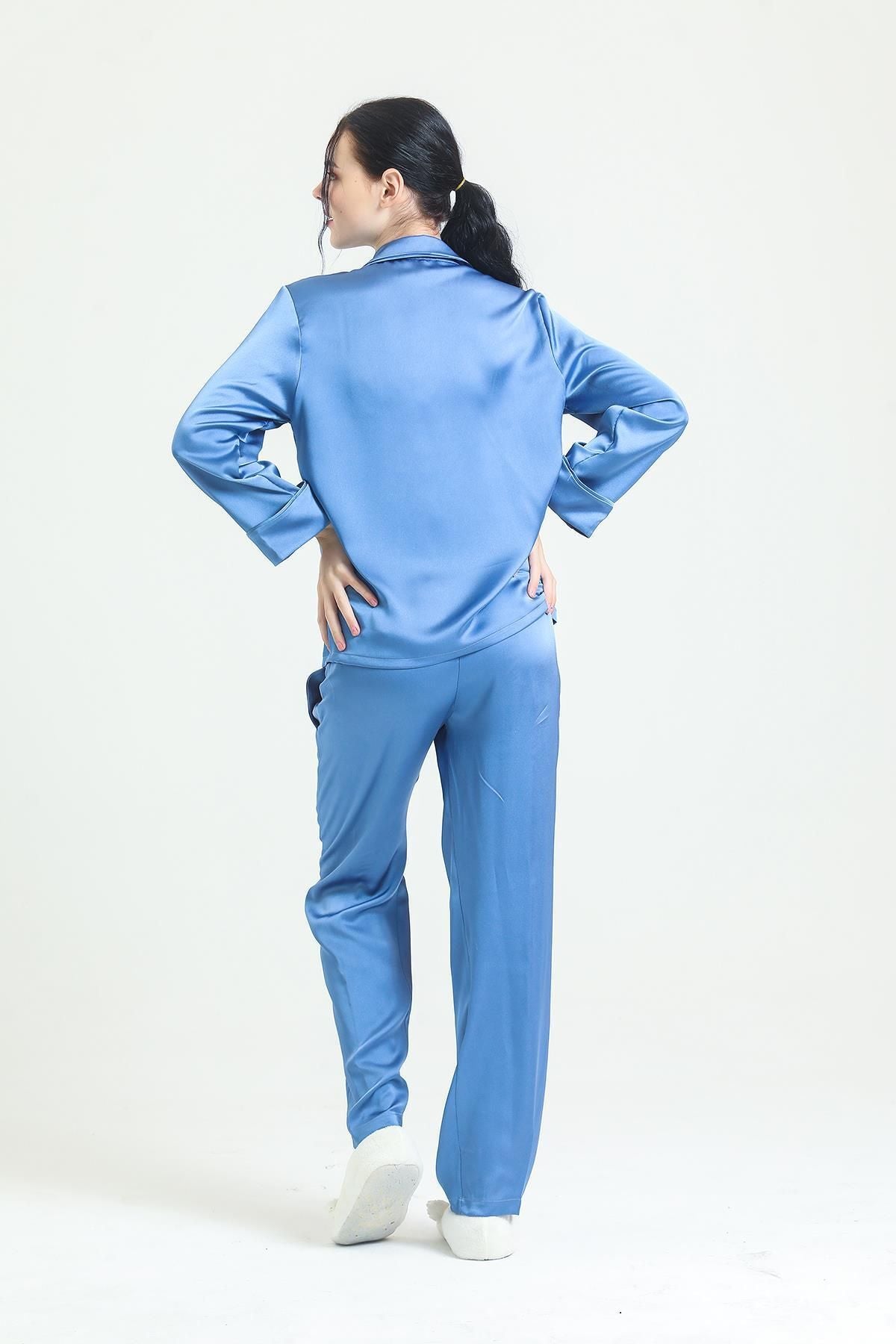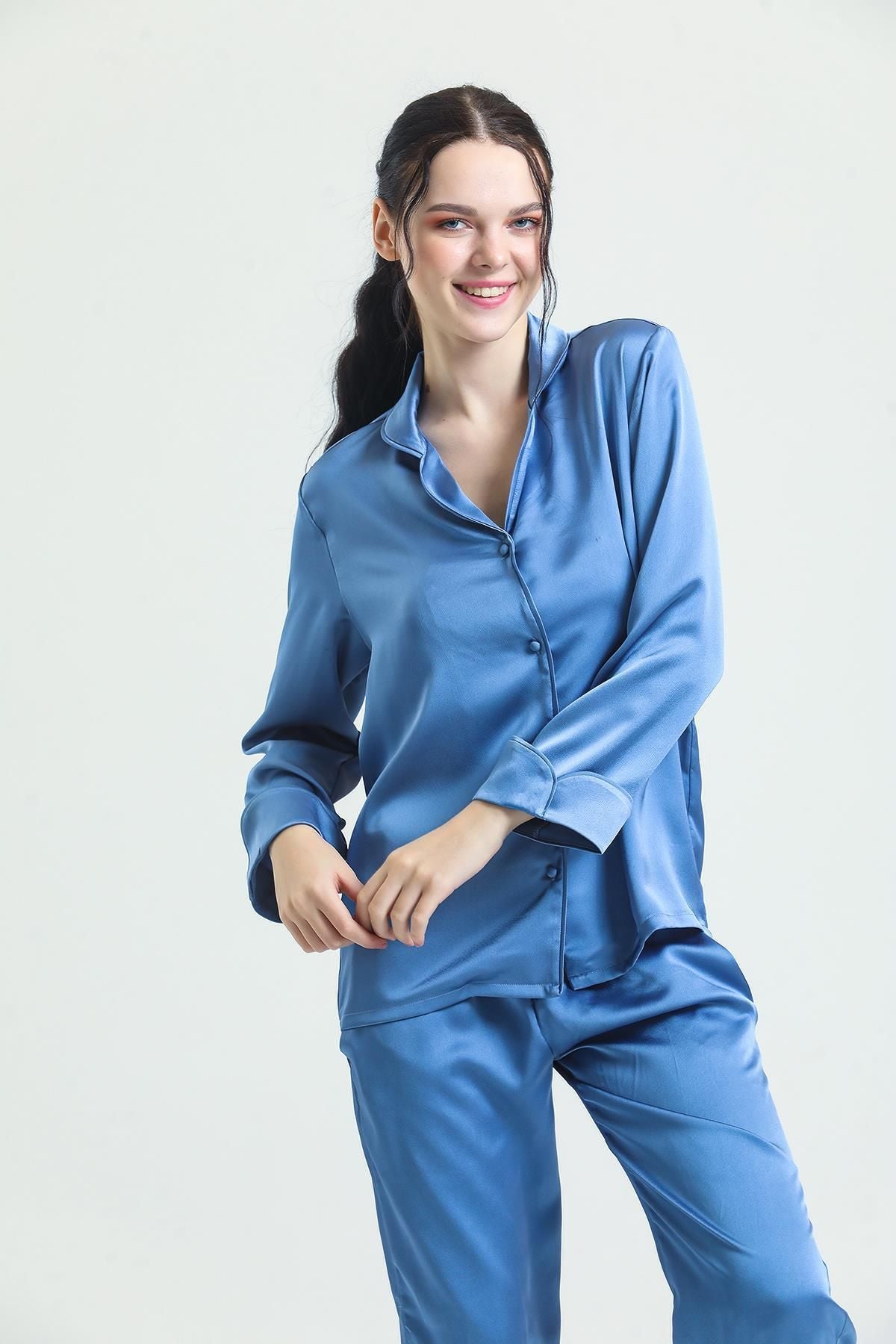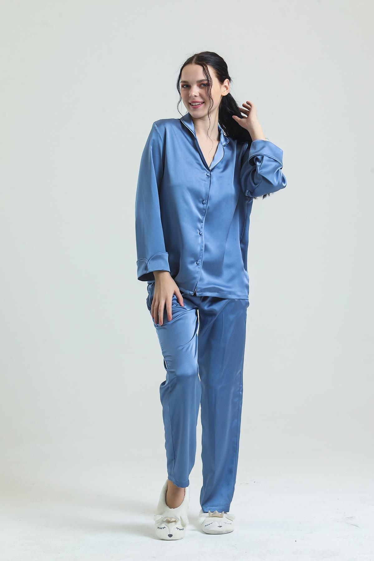 Satin front buttoned pajamas bring luxury and elegance together. You will feel special with its silky texture and elegant design. The front buttoned structure provides ease of use.