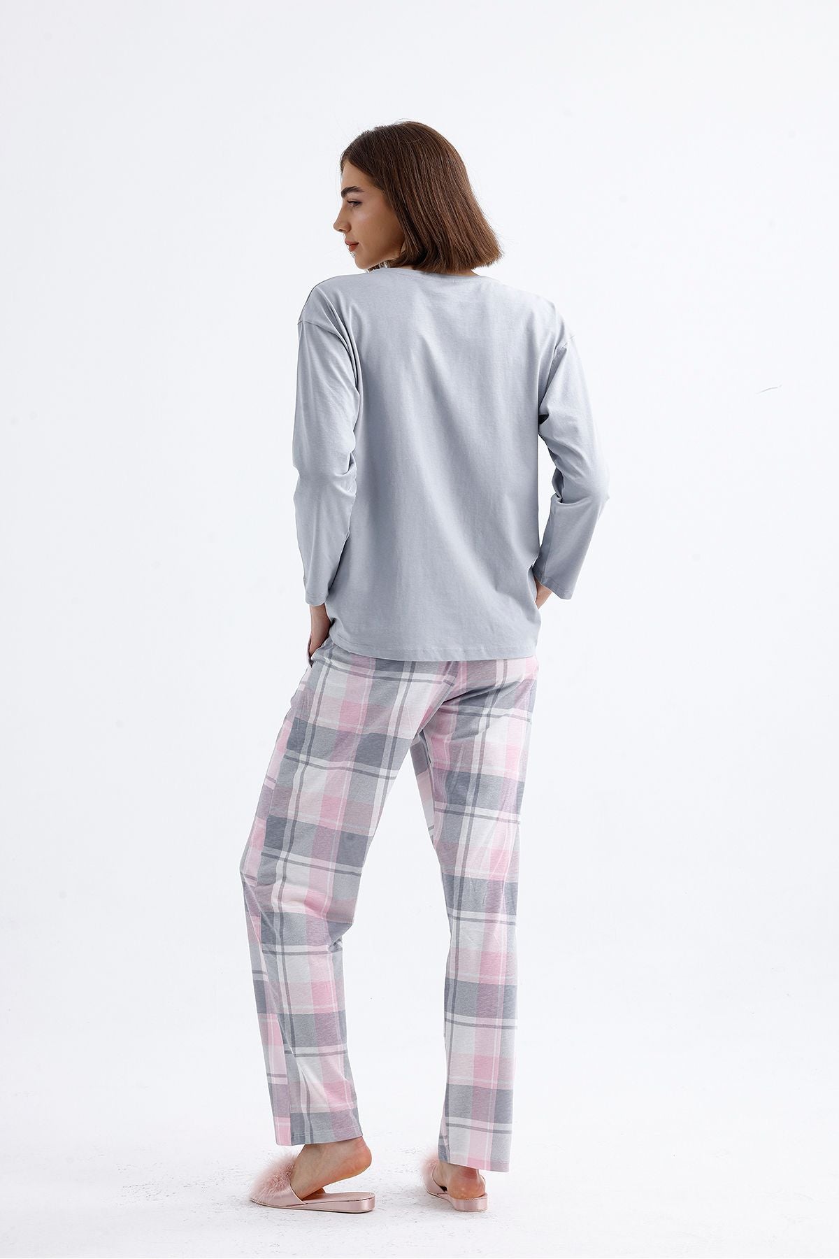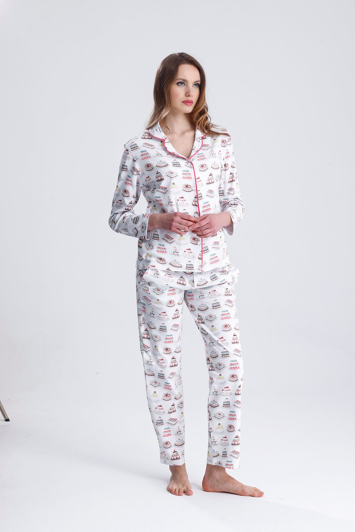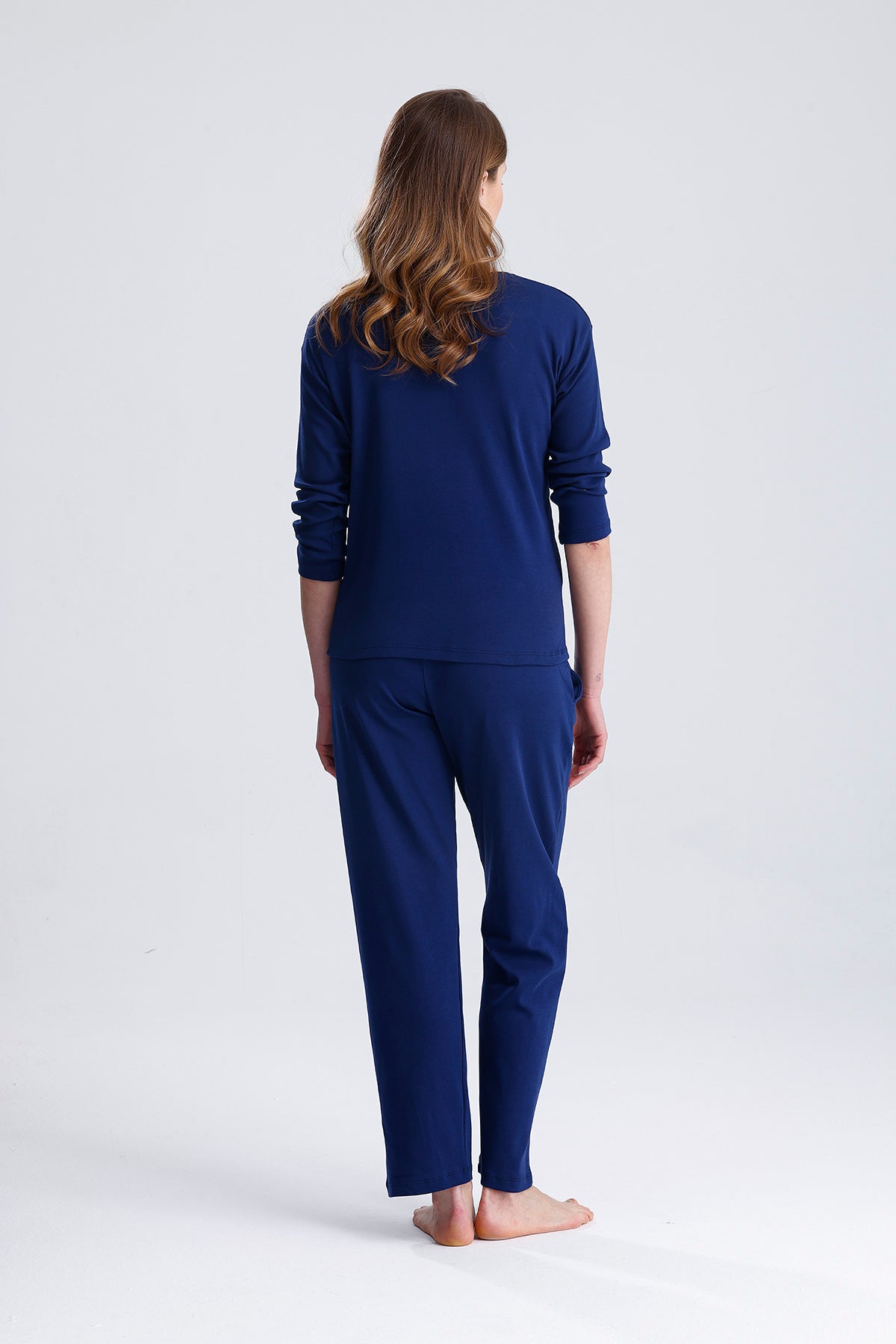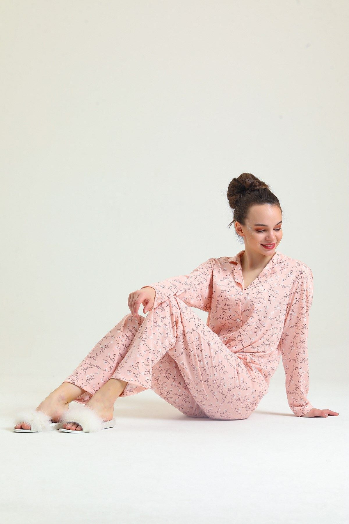 Cotton embroidered long-sleeved pajamas stand out with their natural cotton texture and elegant embroidered details. Thanks to their soft and breathable fabric, they keep you comfortable throughout the night. They are an ideal option for cold nights.
