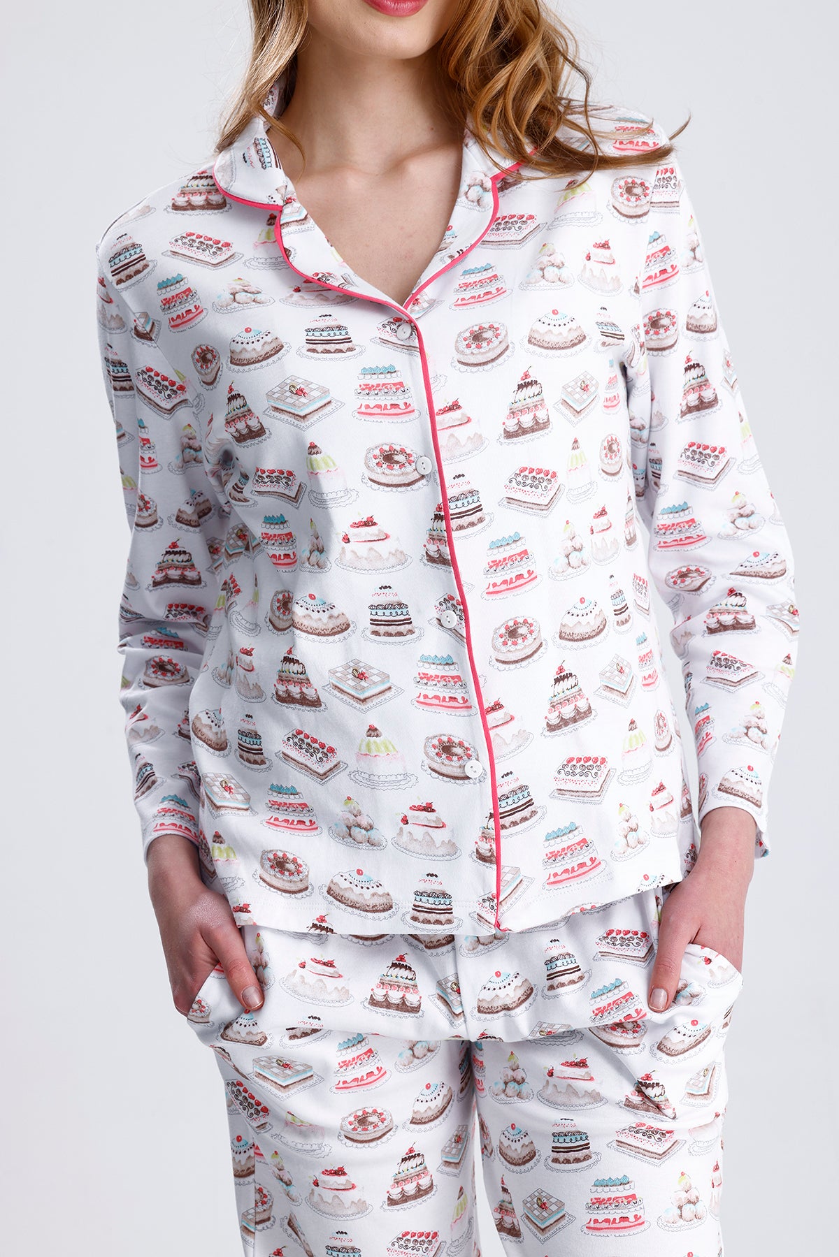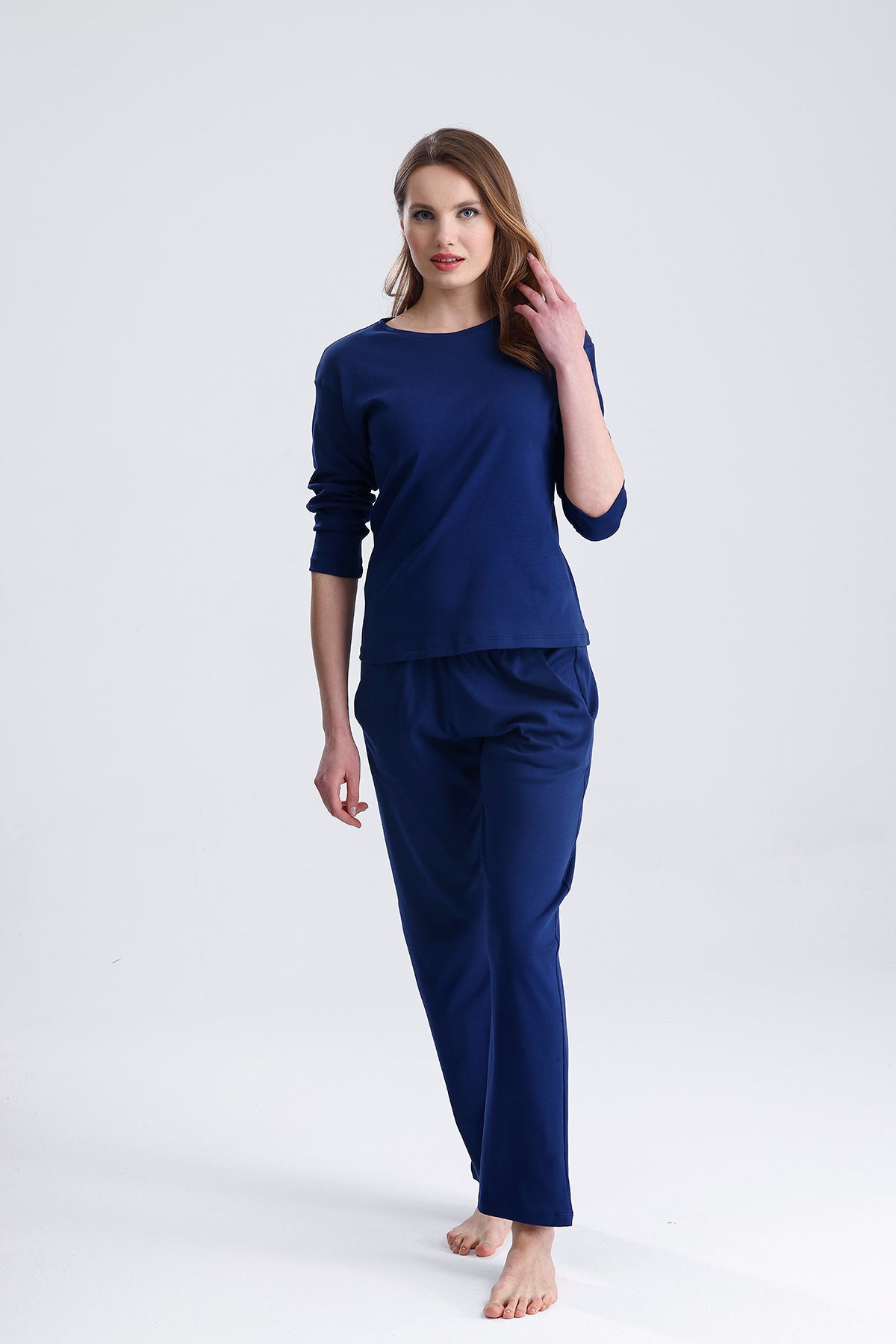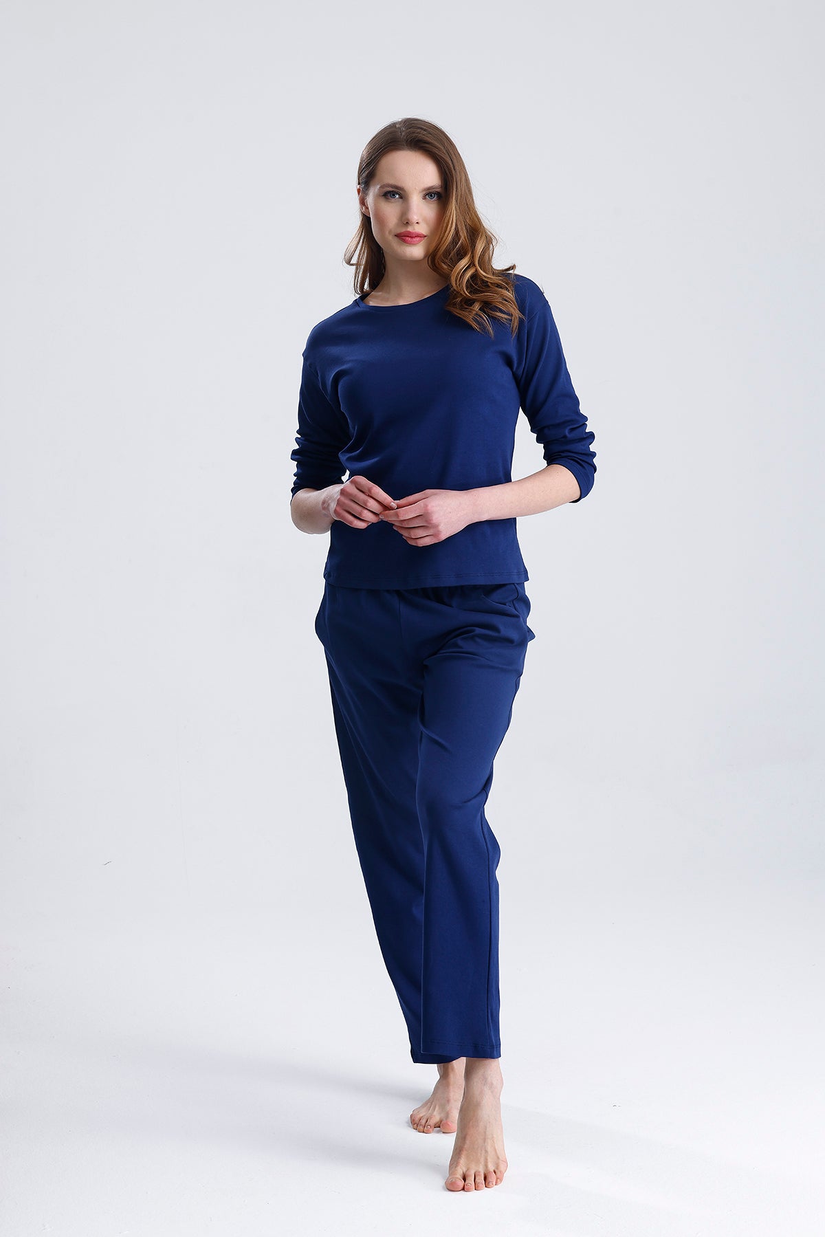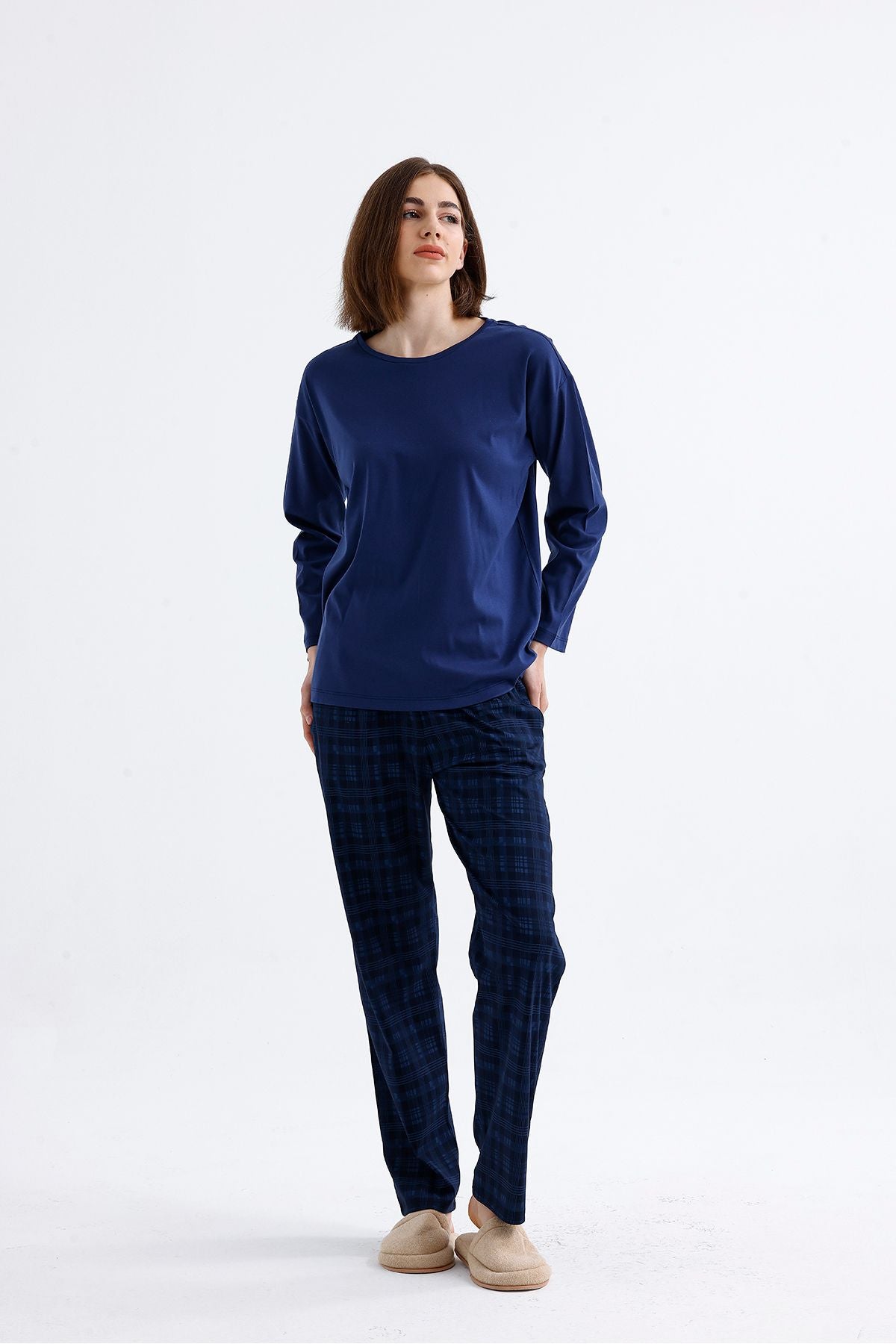 Cotton embroidered long-sleeved pajamas stand out with their natural cotton texture and elegant embroidered details. Thanks to their soft and breathable fabric, they keep you comfortable throughout the night. They are an ideal option for cold nights.