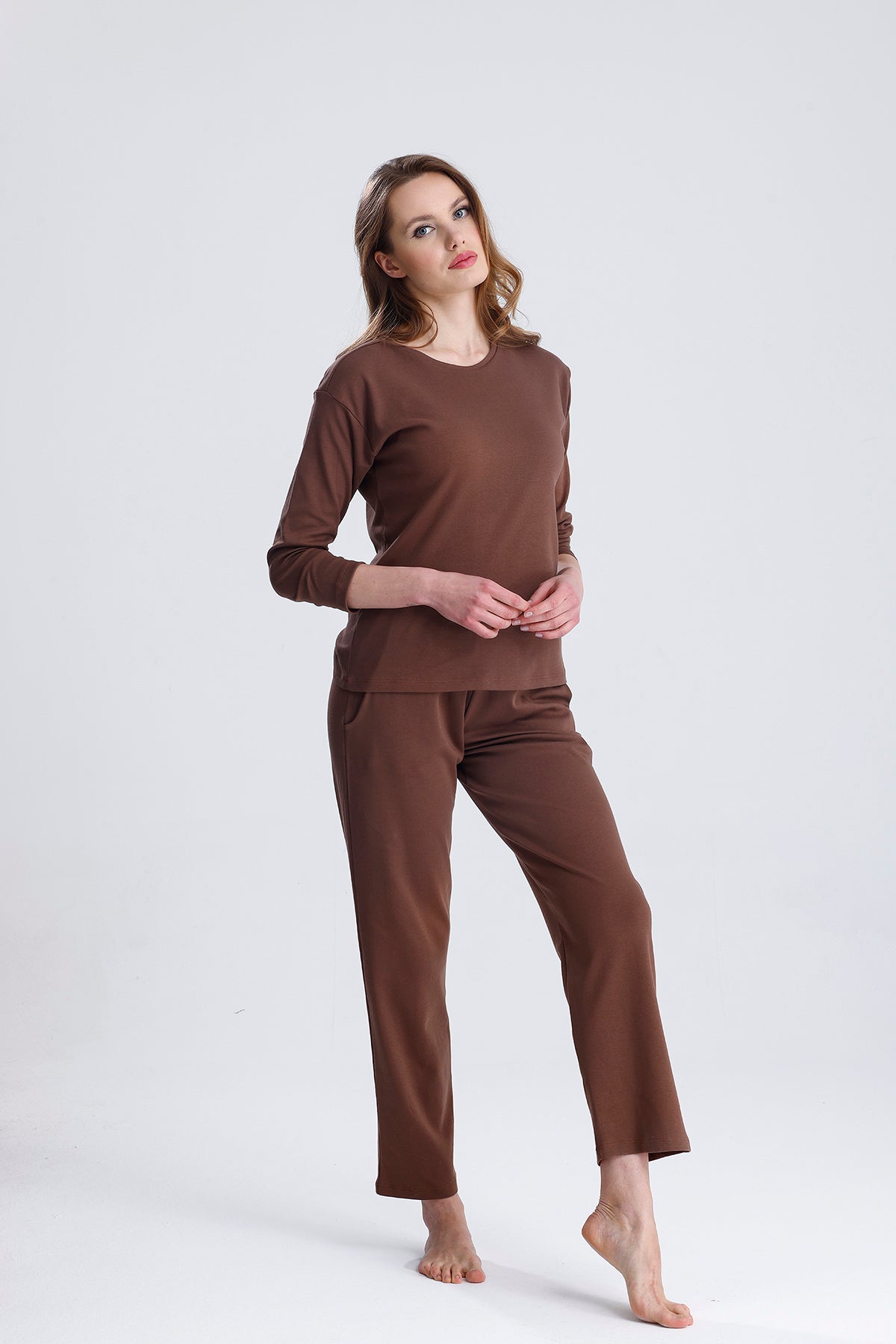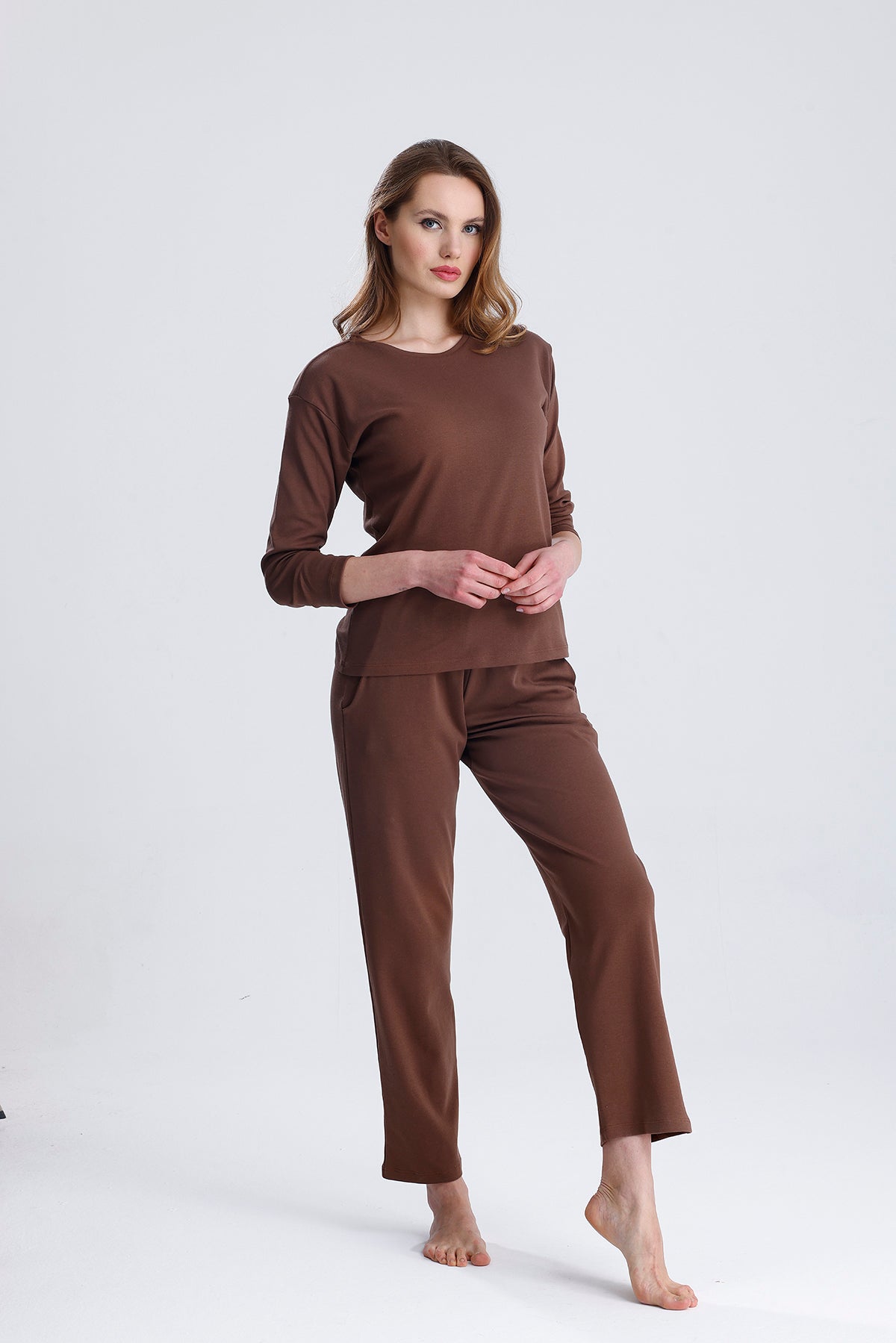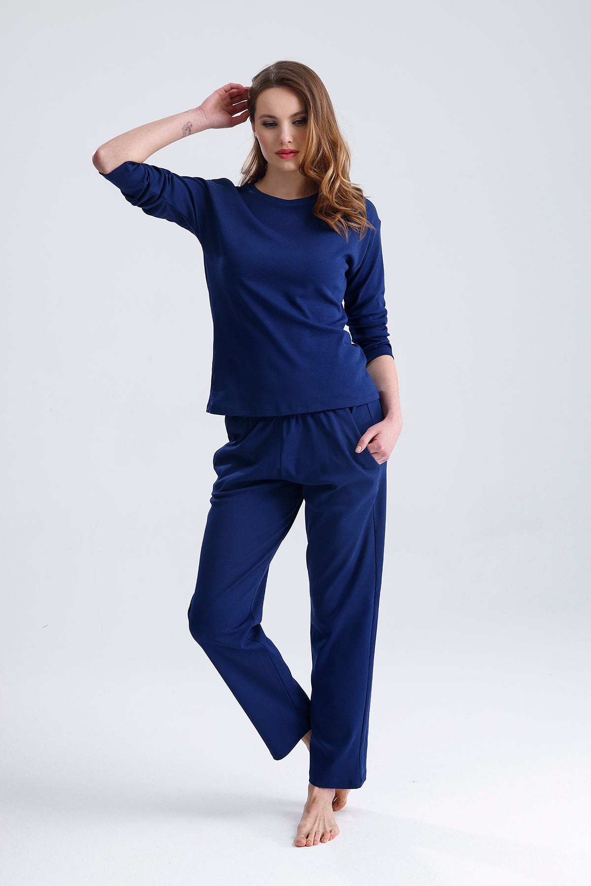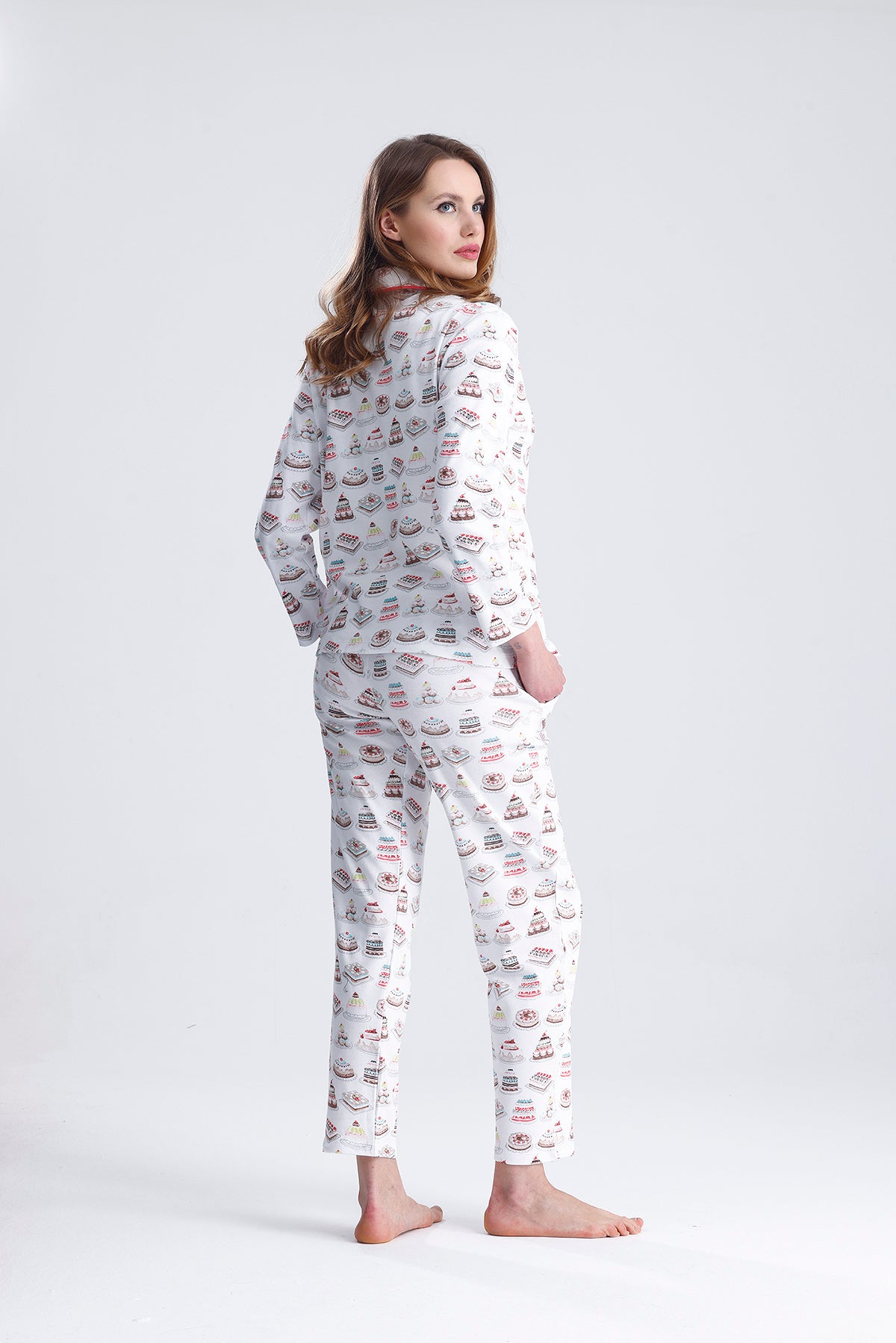 Cotton embroidered long-sleeved pajamas stand out with their natural cotton texture and elegant embroidered details. Thanks to their soft and breathable fabric, they keep you comfortable throughout the night. They are an ideal option for cold nights.