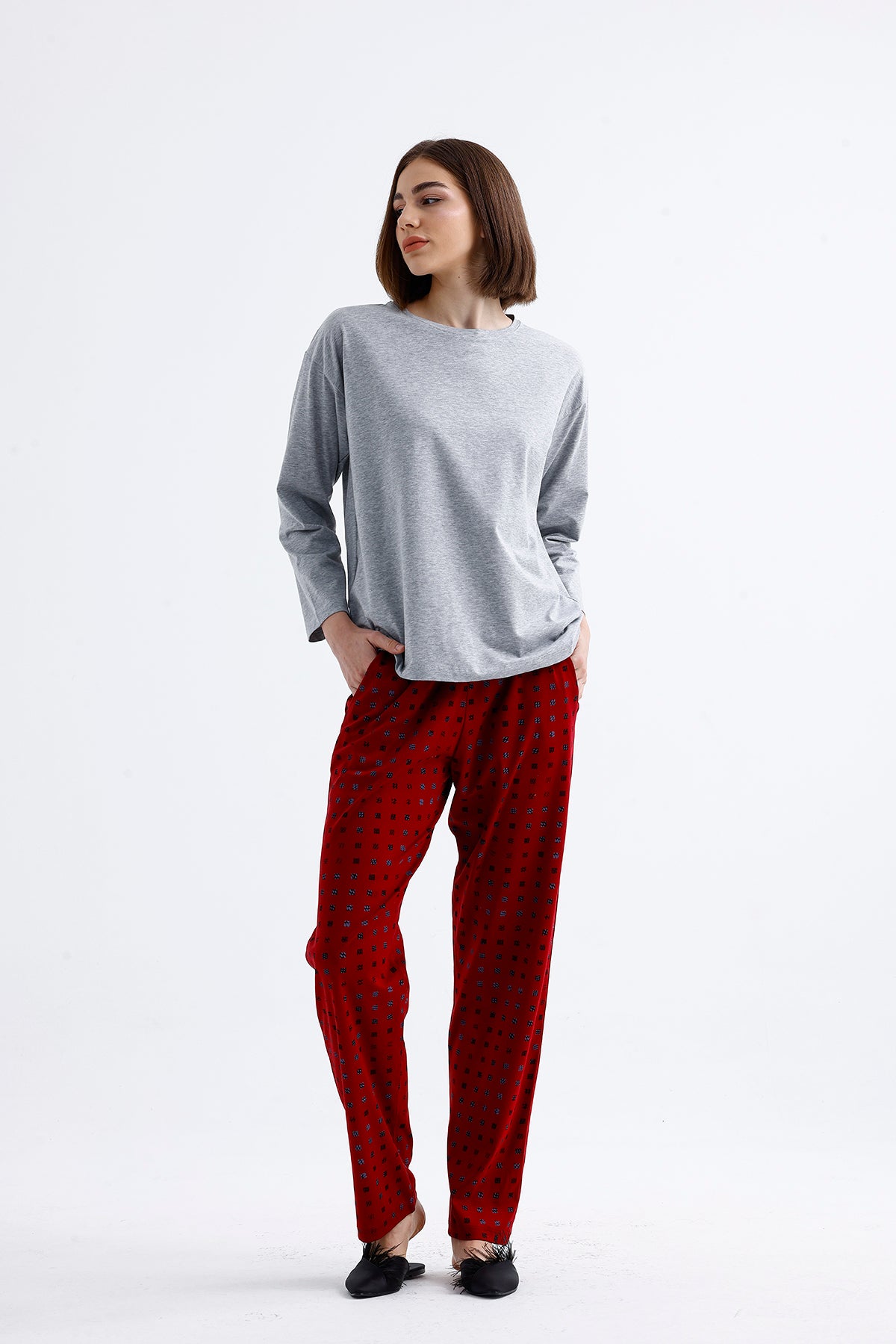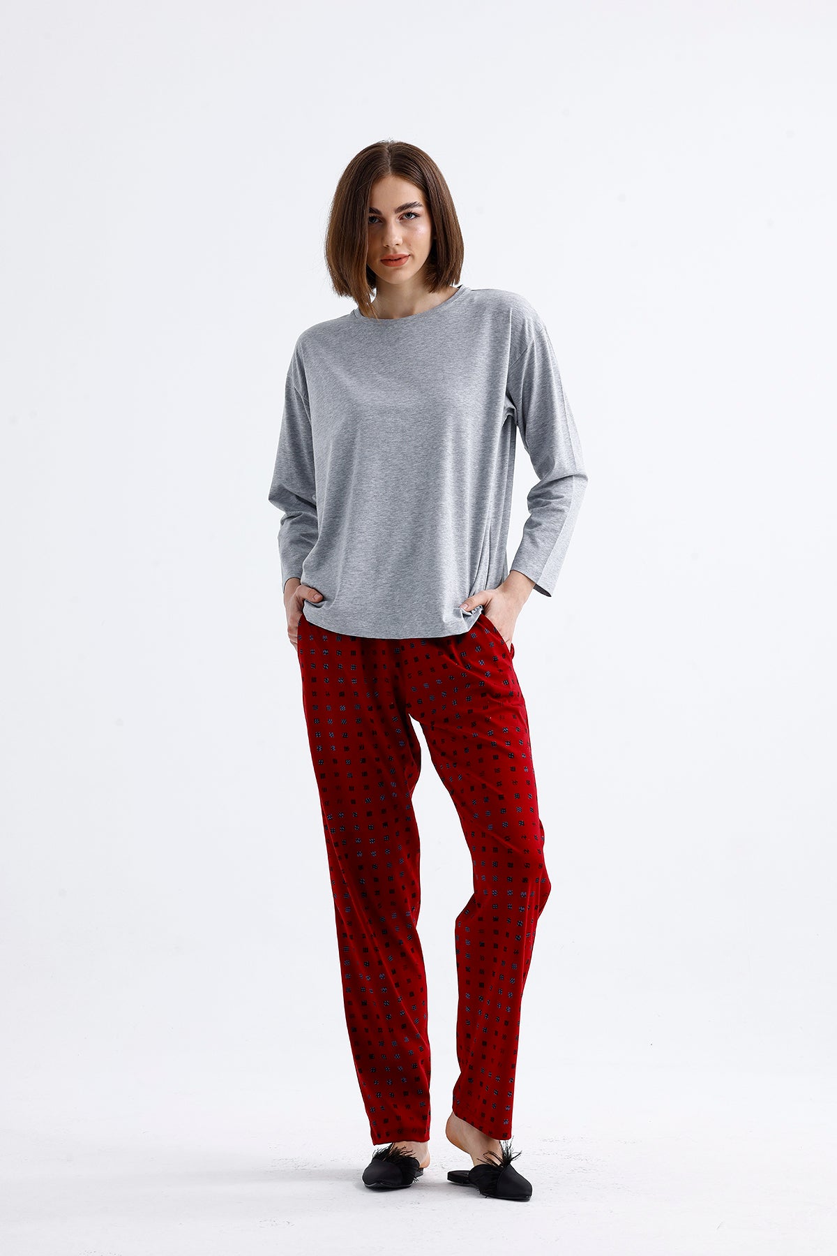 Cotton patterned pajamas stand out with their various patterns that appeal to every taste. Thanks to their soft and flexible cotton fabric, they provide comfort throughout the night.