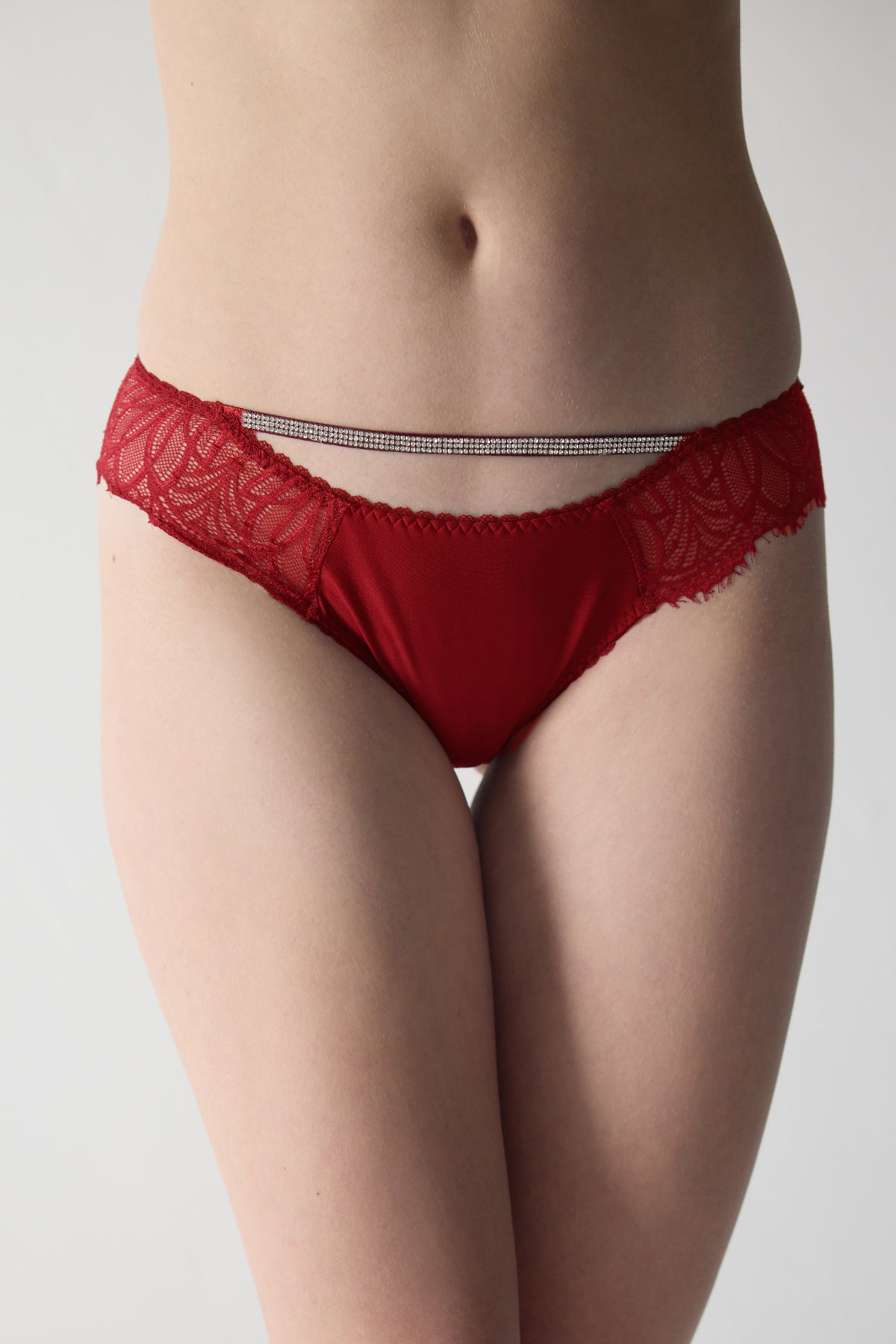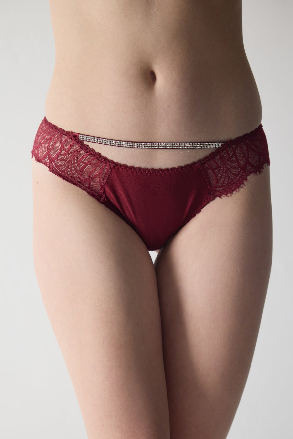 - İç giyim koleksiyonunuzda şıklığı ve rahatlığı bir arada sunan taşlı dantelli string külot, her yaş grubuna hitap eden tasarımıyla dikkat çeker;