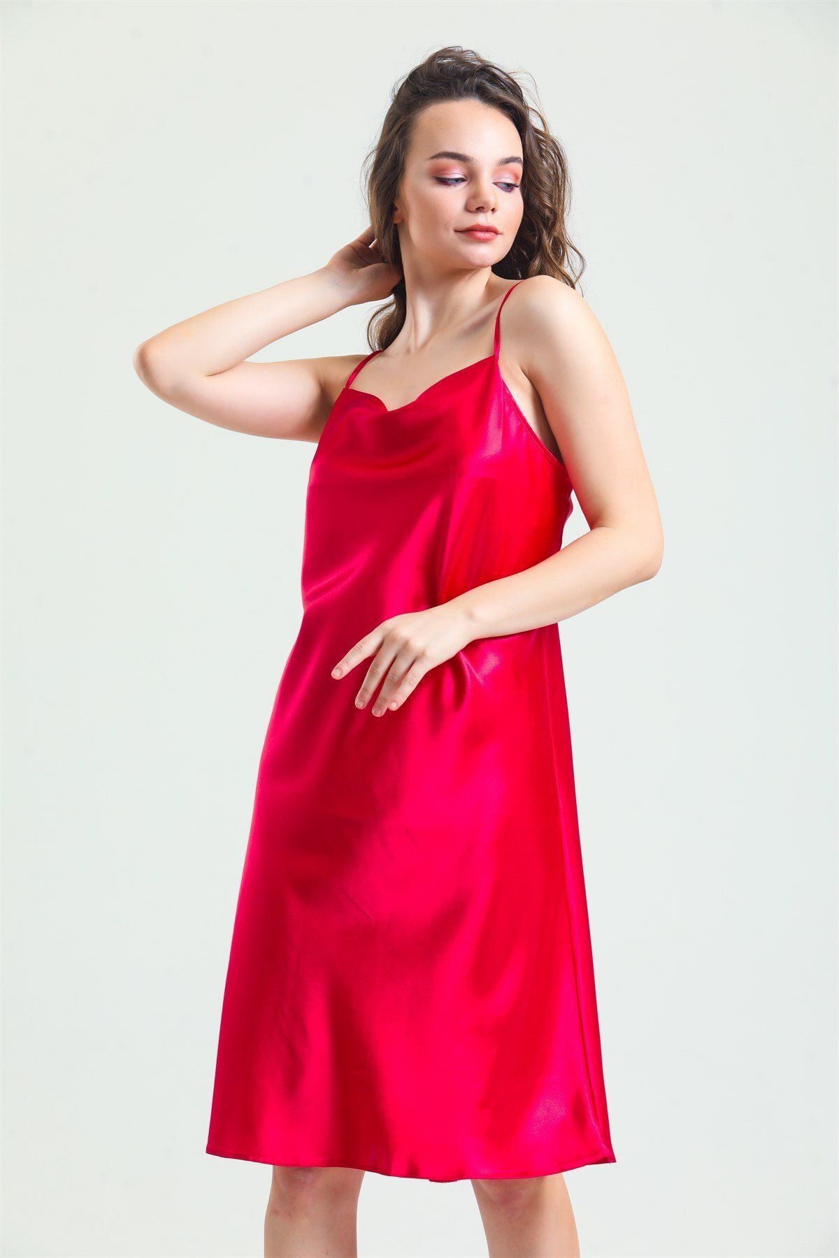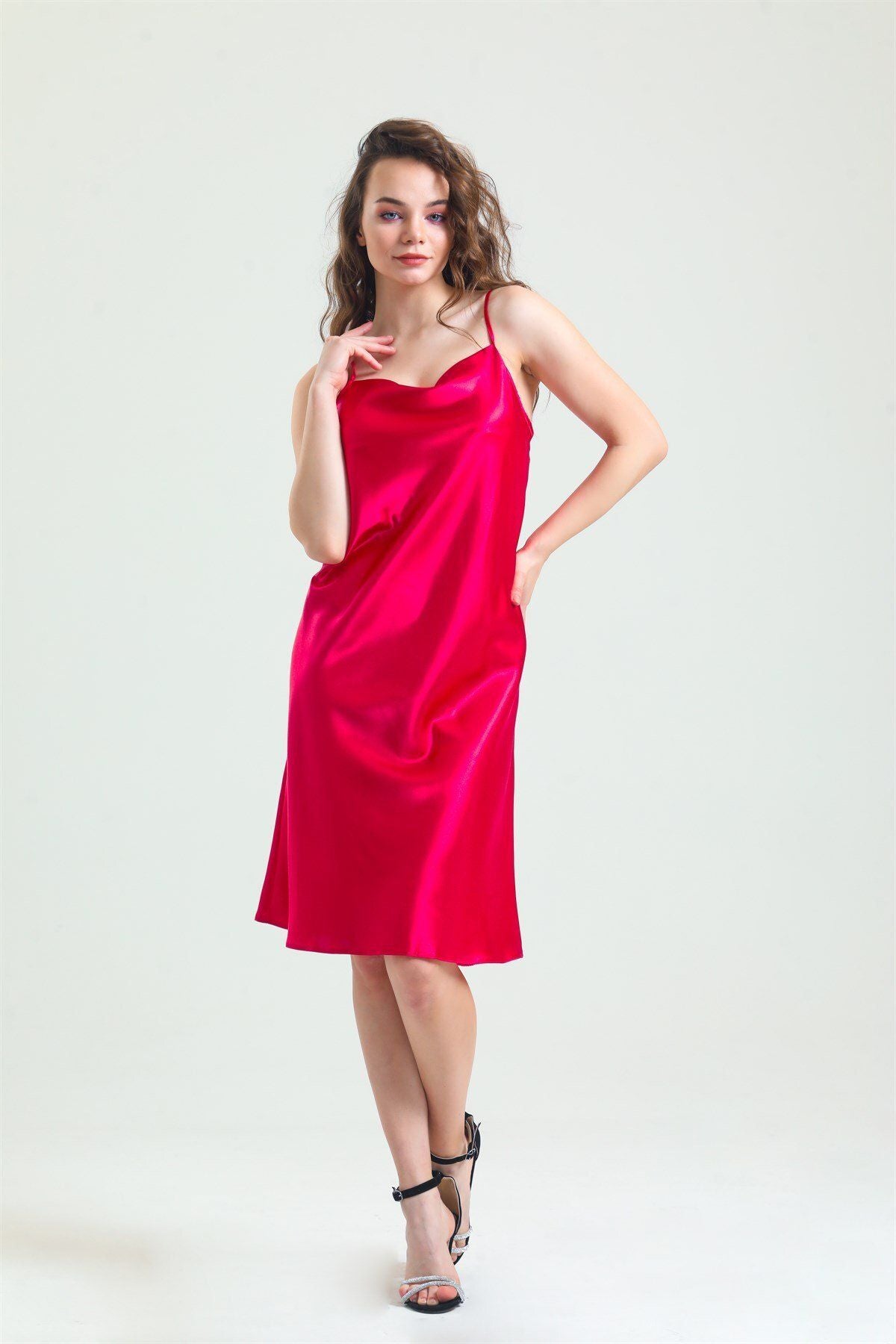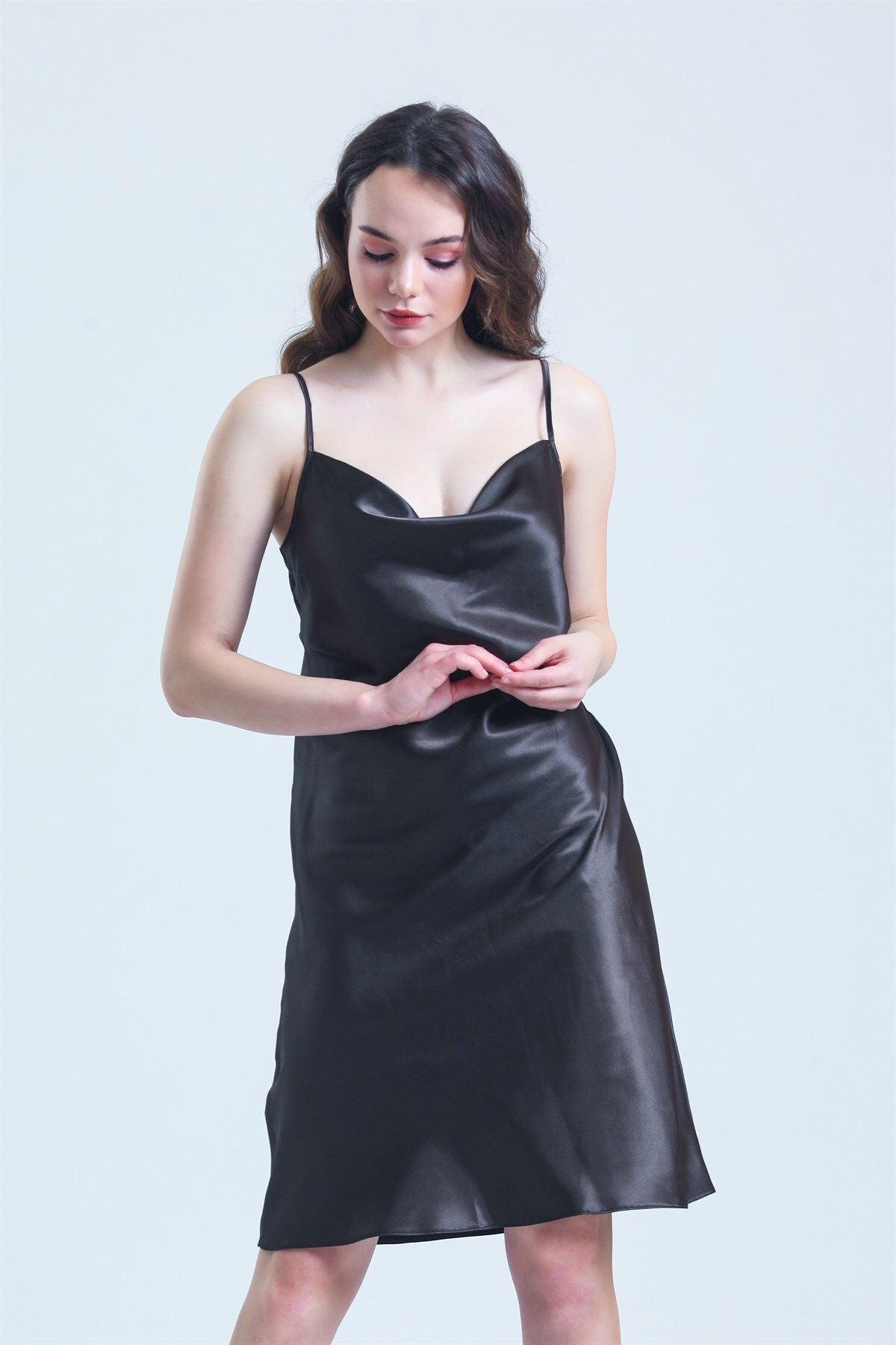 Thin strap design; Cowl neck detail; Satin fabric; This elegant nightgown is a perfect combination of elegance and comfort. Thin straps and cowl neck detail make you feel both elegant and attractive. Satin fabric offers a soft touch to your skin. This nightgown allows you to move comfortably throughout the night while adorning you in a stylish way. An ideal choice to feel special at every moment of the night. Experience comfort and elegance together with the Cowl Neck Satin Thin Strap Short Women's Nightgown. Fabric Content: 100% Polyester 7790