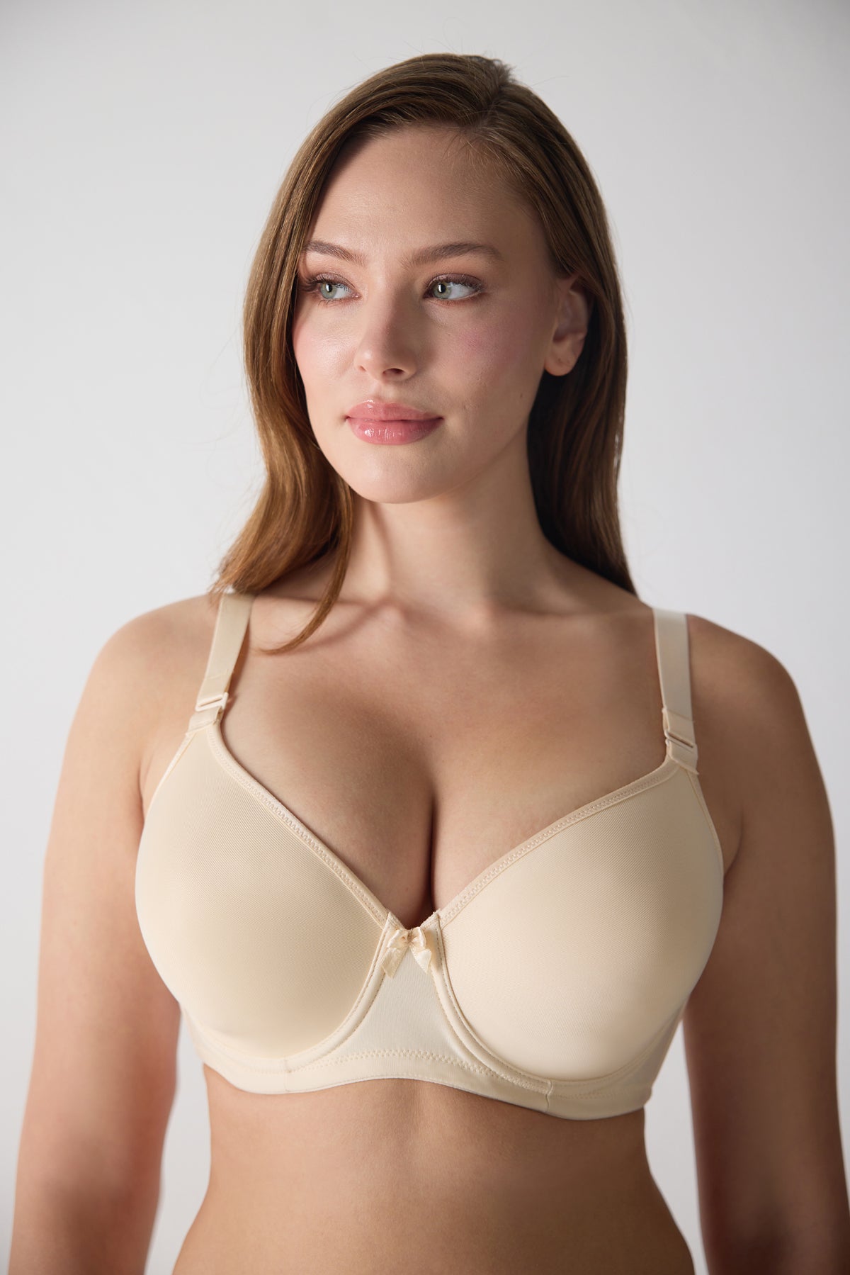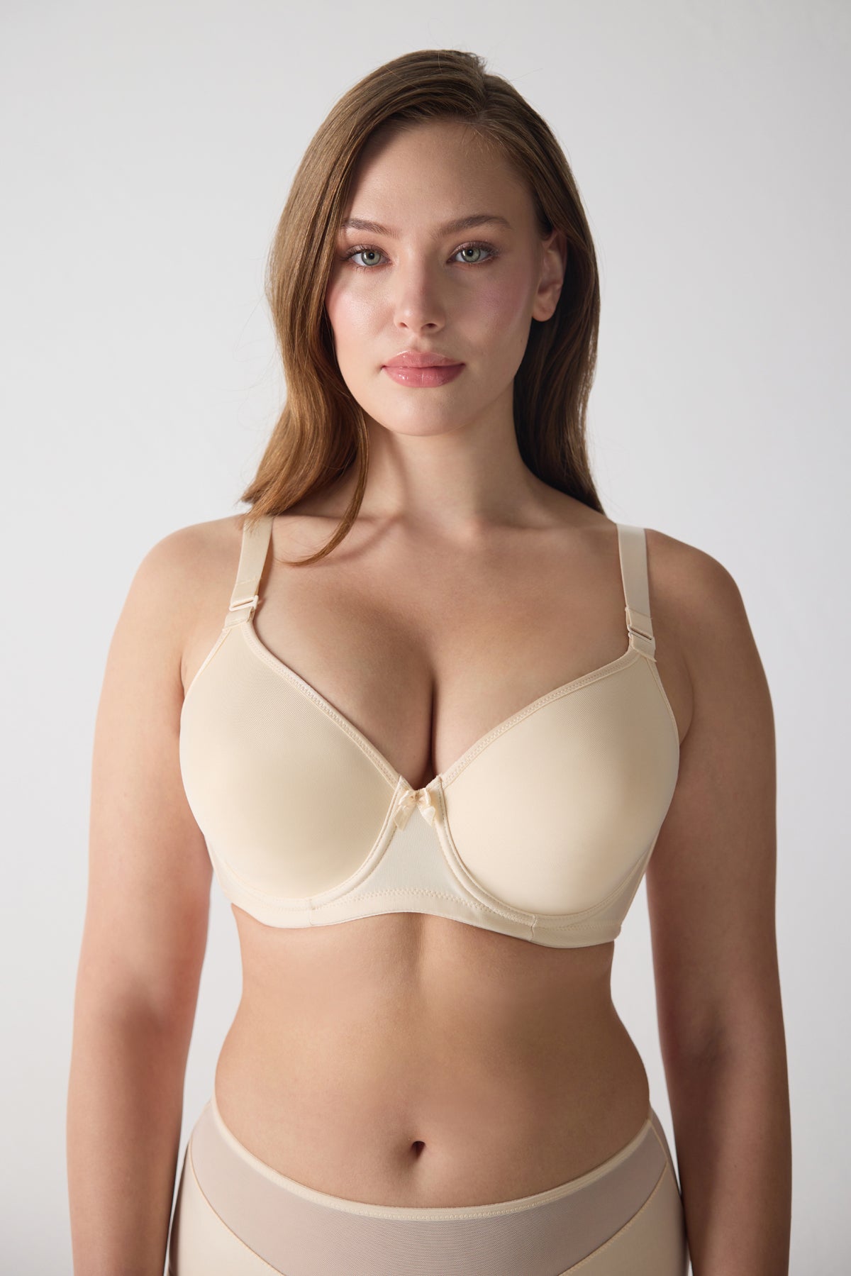 - Bu sütyen, ince süngerli kuplarıyla hafif bir dolgunluk sağlarken, büyük bedenler için özel olarak geliştirilmiş toparlayıcı yapısı ile gün boyu mükemmel bir destek sunar.