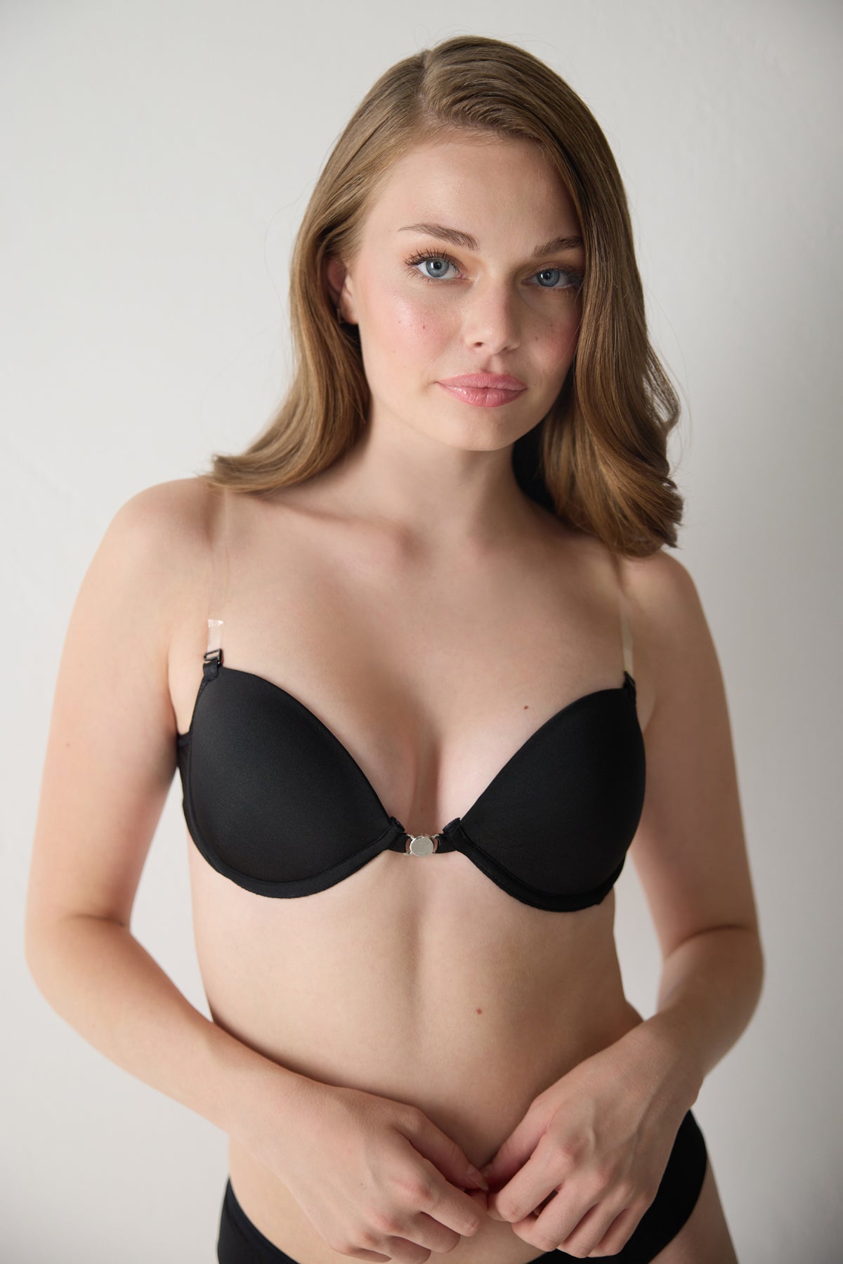 Offering a stylish and practical solution, the Front Clip Back Strap Transparent Push Up Bra is designed to provide perfect fit and support. ; Specially designed transparent back straps match perfectly with strapless or low-cut tops and offer a flawless look. ; It is easy to wear with its clip front design and is ideal for long-term use with its durable materials. ; It also lifts and shapes the breasts with its push-up effect, offering a natural look. ; It can be put on and taken off quickly and easily with its clip structure at the front. ; Transparent back straps provide hidden support and offer a compatible look with various outfits. ; This bra is a perfect option for both daily use and special occasions. ; Fabric content: 77% Polyamide 13% Elastane 10% Polyurethane;