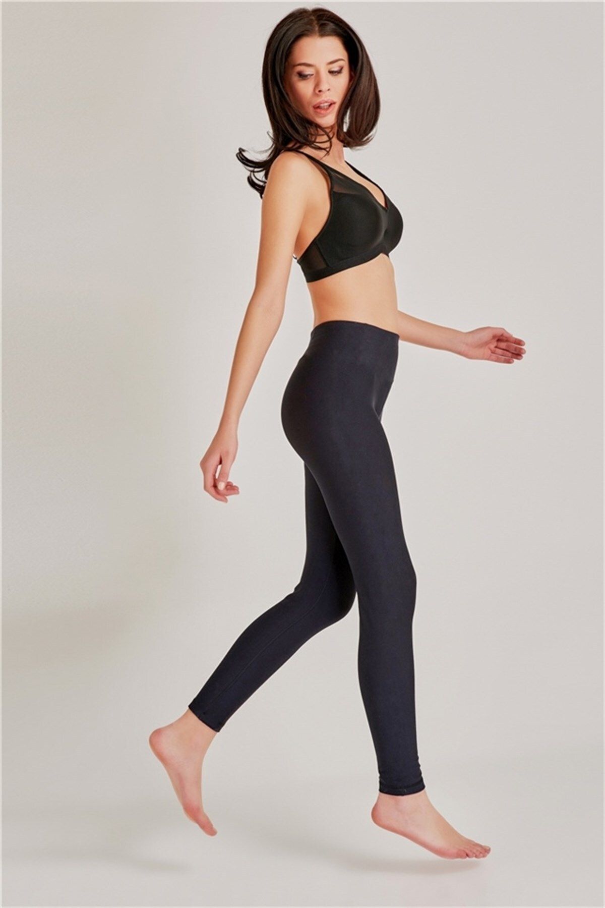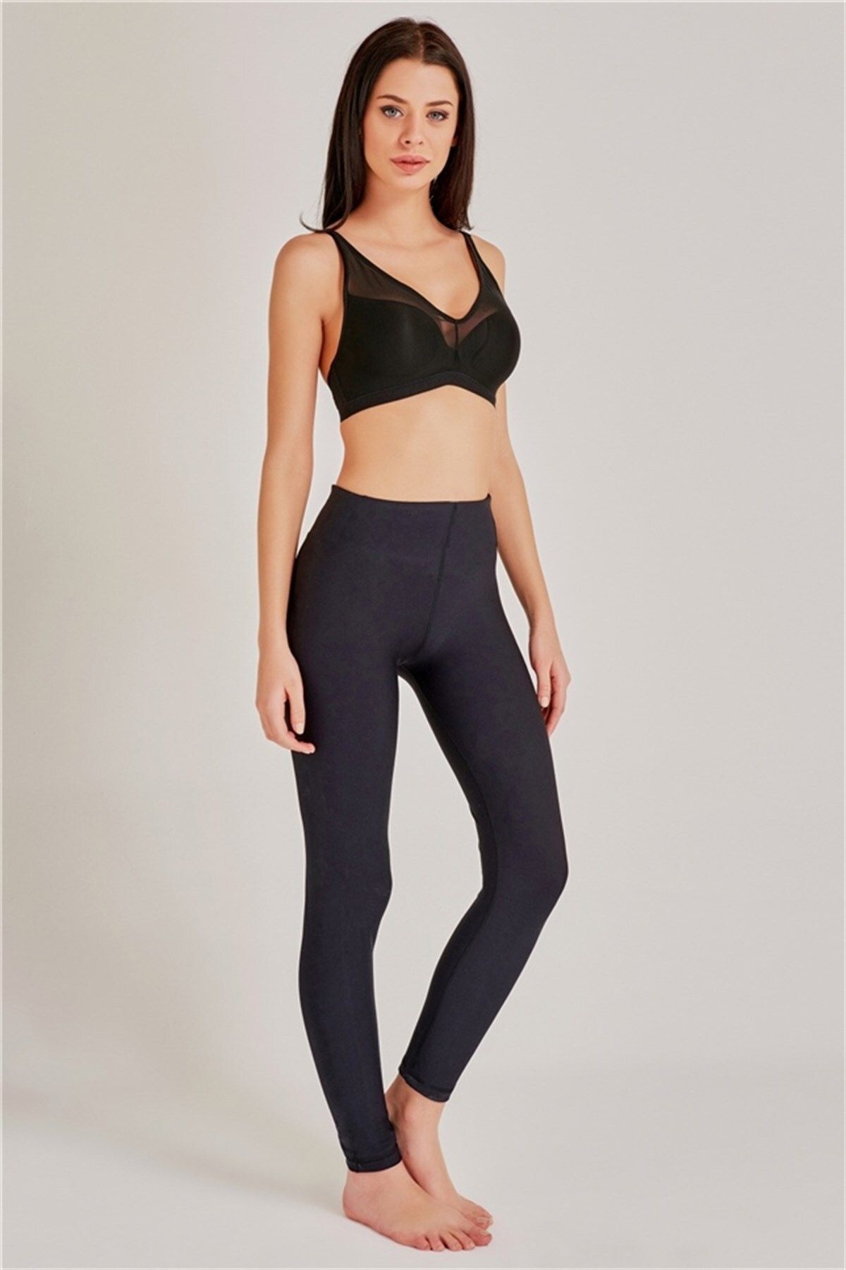 Black High Waist Seam Detailed Raised Women's Leggings - 366