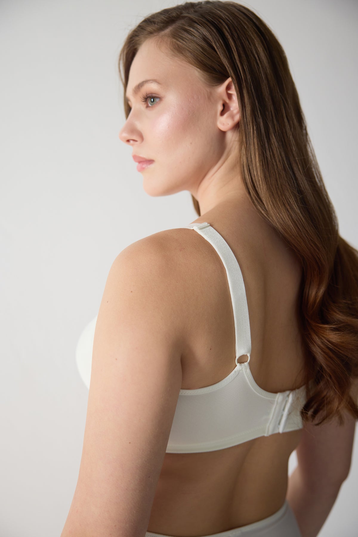 - Sütyenin özel olarak tasarlanmış yan kısımları, ekstra rahatlık için yanlardan sarkan fazlalıkları minimize eder ve pürüzsüz bir siluet çizer.